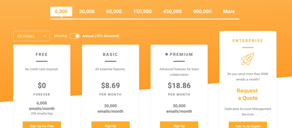 While the Enterprise plan is catered for high volume sender with more than 900K emails send per month.